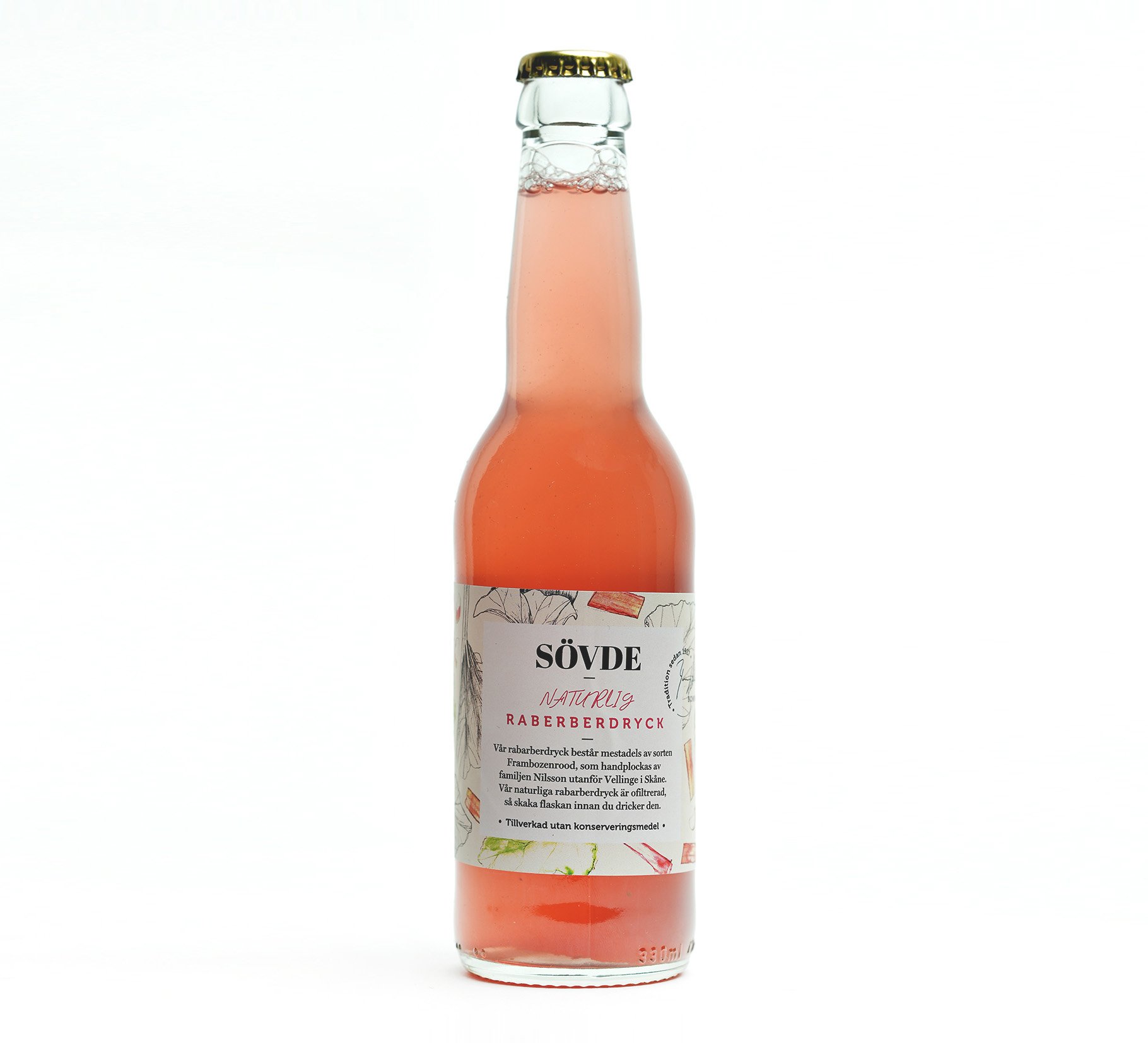 Den naturliga rabarberdrycken är ofiltrerad vilket gör att det vita fruktköttet sjunker till botten, så skaka flaskan innan du dricker den.