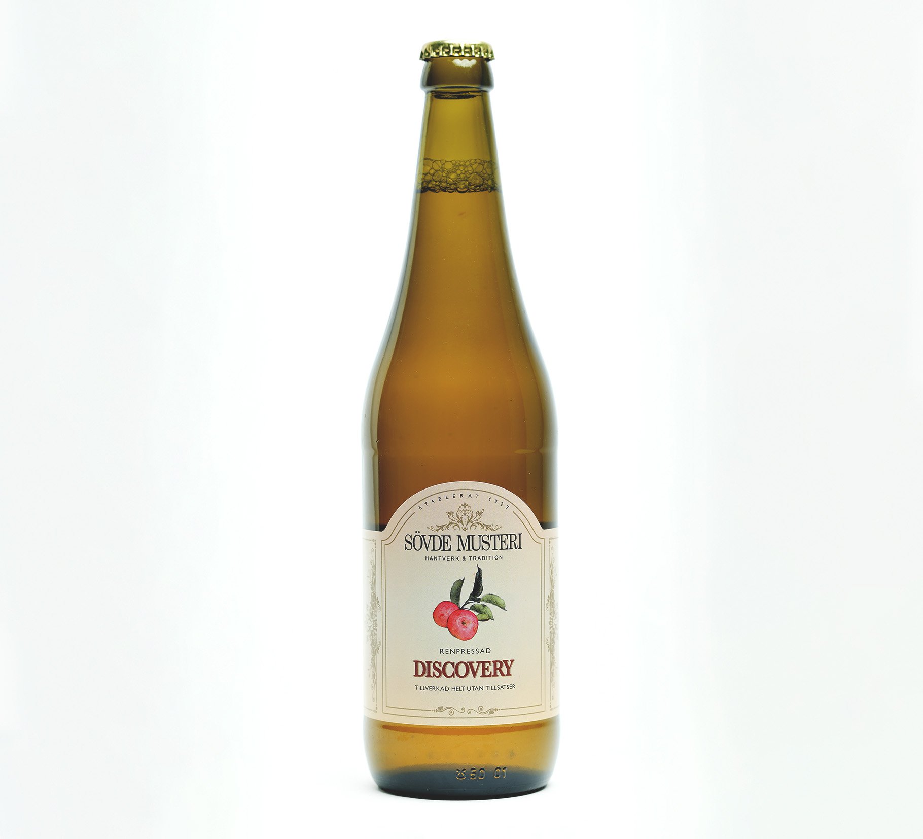 Varje flaska innehåller 1,3kg kallpressade Discoveryäpple, helt utan tillsatser.